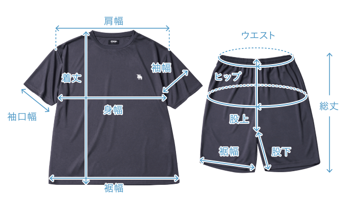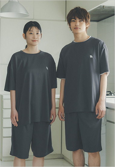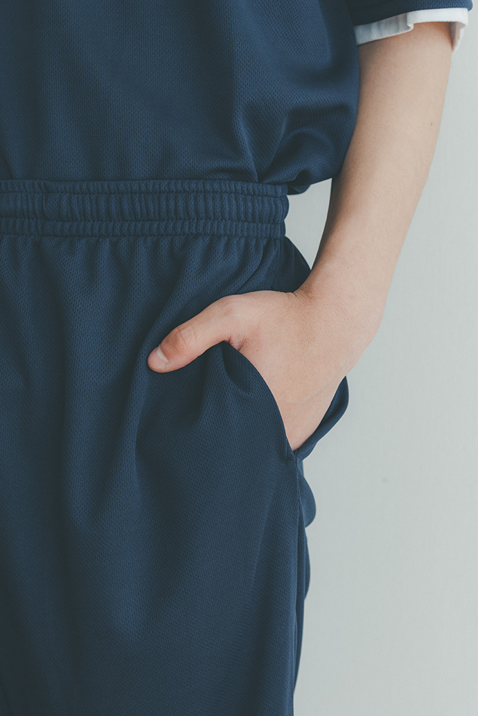 素材【Tシャツ】本体:ポリエステル 100% リブ部分:ポリエステル 95%、ポリウレタン 5% 【ハーフパンツ】ポリエステル 100%