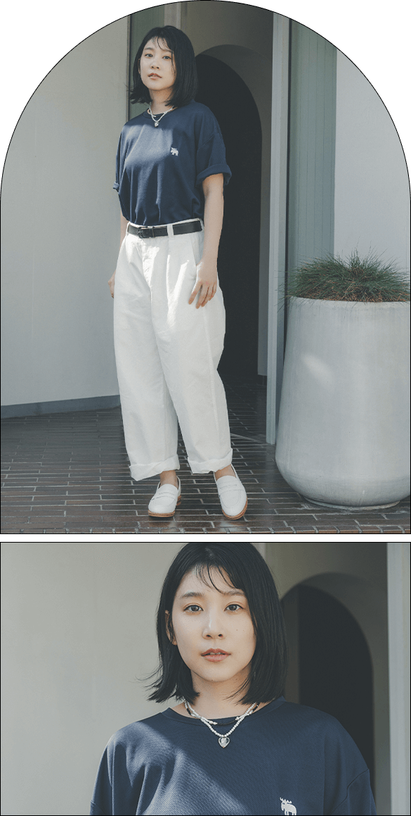 Tシャツの胸元には