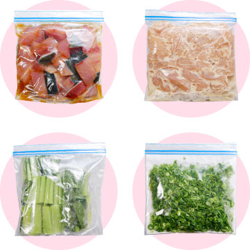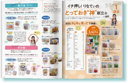 - 買った食材は何曜日に使用し、どう保存すればいいかが書いてあります。冷蔵・冷凍など、それぞれの食材に適した方法を載せているので、食材を余らせる&腐らせる心配もありません。
