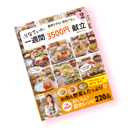『りなてぃの一週間3500円献立2』の発売を記念して、食費1カ月分に該当するアマゾンギフト券を100名様にプレゼントします!※一週間3500円の献立なので、1カ月(4週間)分で1万4000円となります
