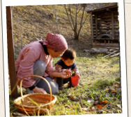 | 巻頭で取材させていただいた甲斐さんのお宅は、愛媛の山のなかにポツンとあり、大きくなって出て行った子どもたちが、もどってきて、いまや大人7人、子ども3人の大所帯になっています。甲斐家は基本が自給自足で、食べ物はいうにおよばず、家までもセルフビルドしているという本格派。でもみんな楽しそうにワイワイやっていて、取材しているほうも楽しくなるほどです。最近もどってきた娘さんが中心になって自然派レストラン開業を準備中とのことだったので、できあがったら甲斐家の食卓同様、採れたて食材を使った料理を食べに、再訪してみたいものです。 |