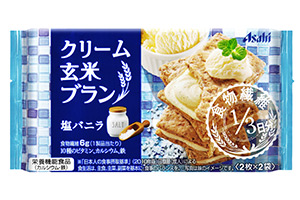 ほのかな塩でさっぱり仕上げた本格派バニラクリームを、玄米と小麦ブランを練り込んだザクザク香ばしい生地でサンド。