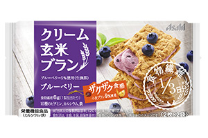 完熟ブルーベリーを使用した甘酸っぱいクリームを、玄米と小麦ブランを練りこんだザクザク香ばしい生地でサンド。